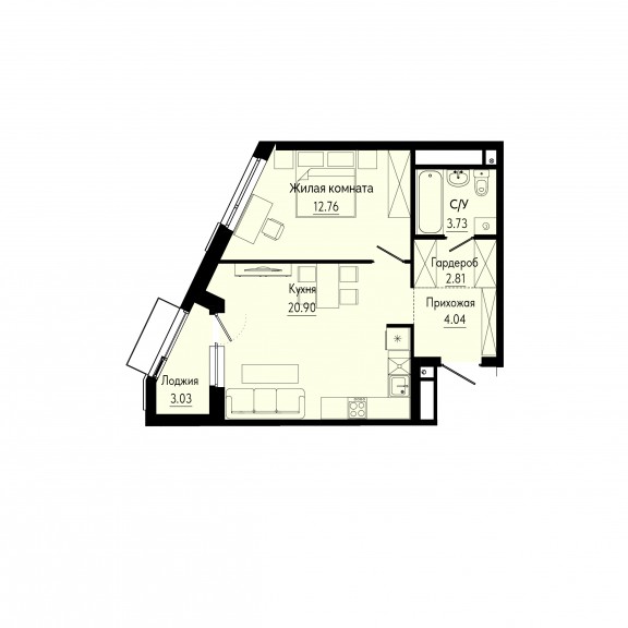 Однокомнатная квартира №278
